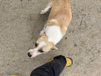 Apollo kam in unsere Protectora, nachdem er tagelang allein umherirrte, sich den Leuten näherte und um Essen bettelte... seine Ankunft in der Protectora war sehr stressig für ihn, nachdem wir ihn sichern konnten.