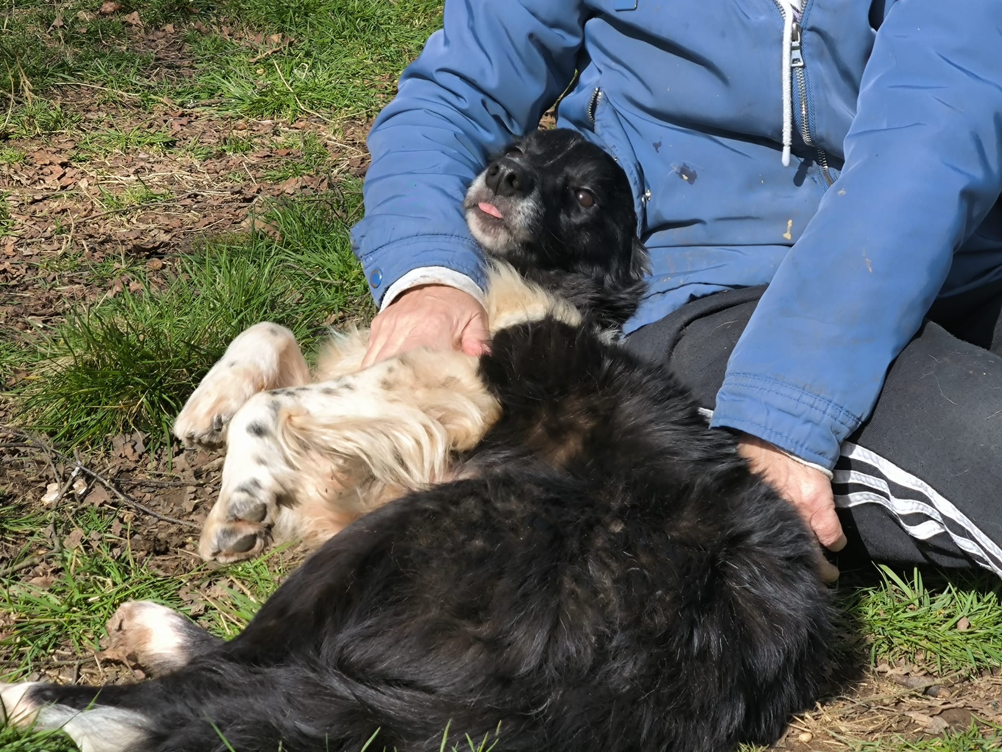 Carmen und die liebe, freundliche Border Collie-Mixhündin hatten gestern eine Kuschelstunde in der Protectora!