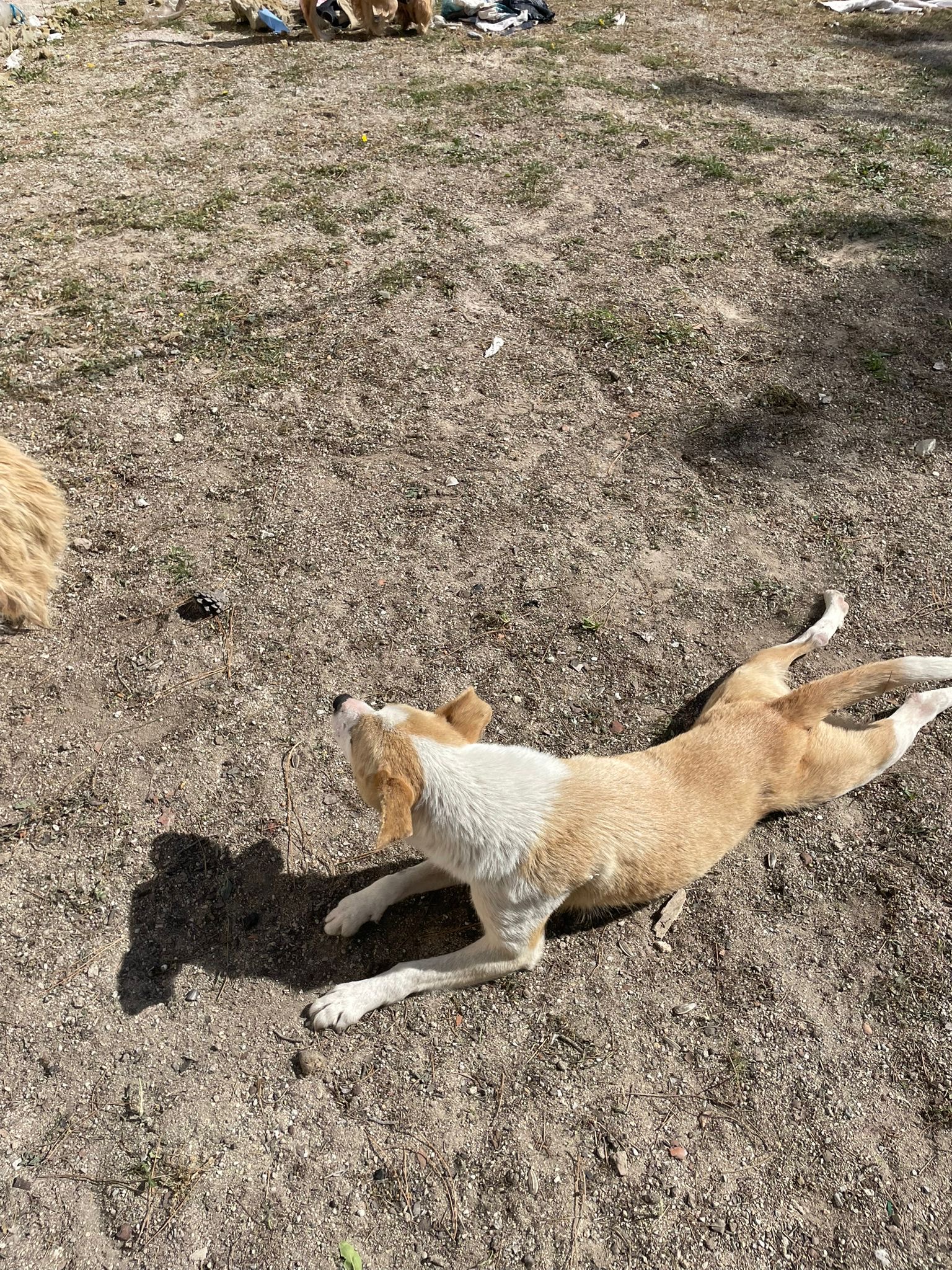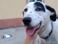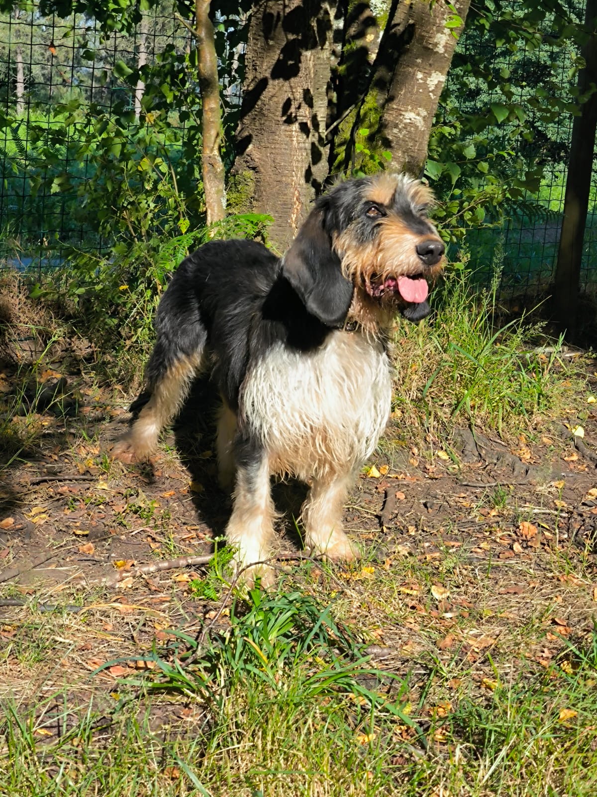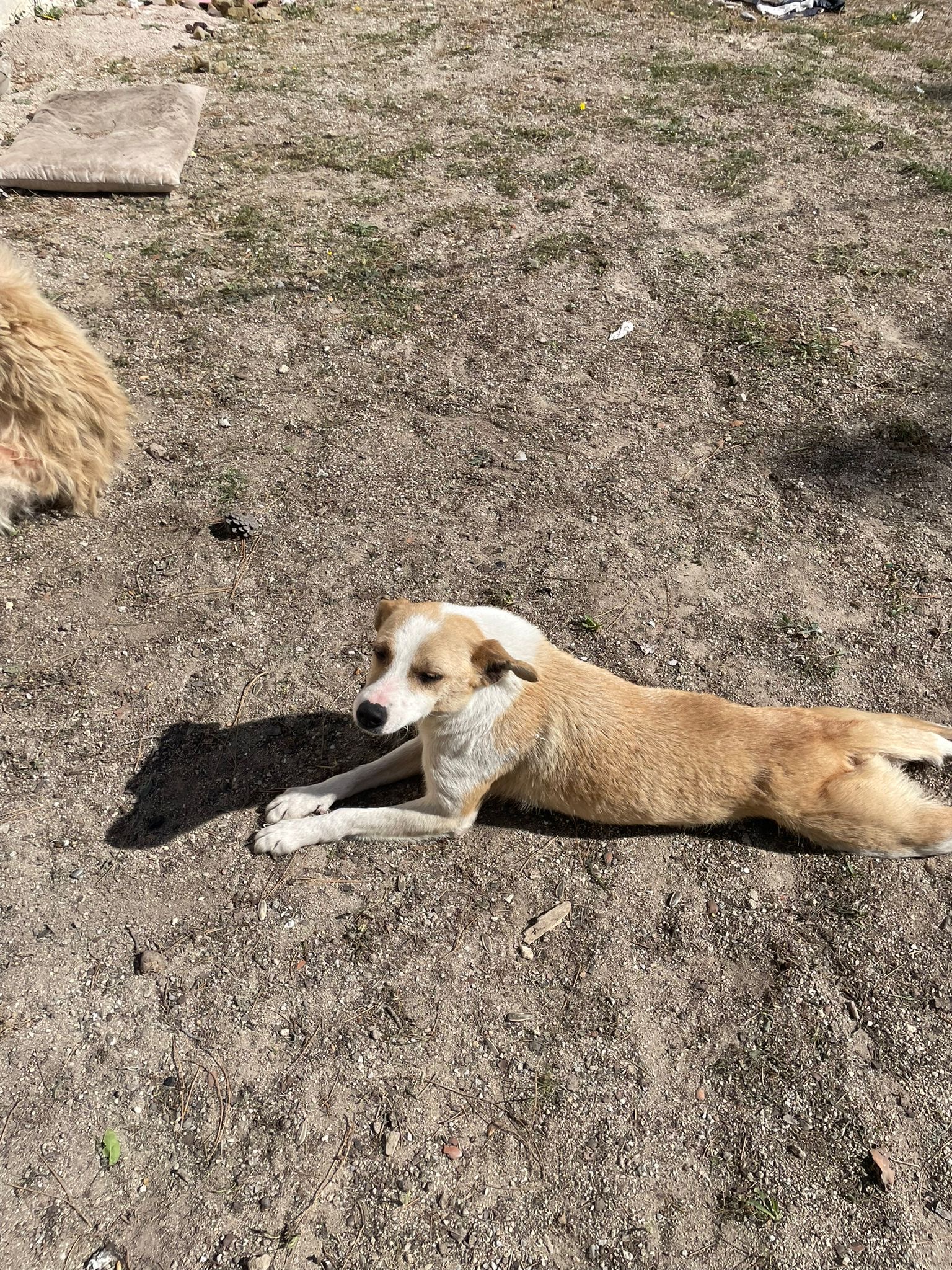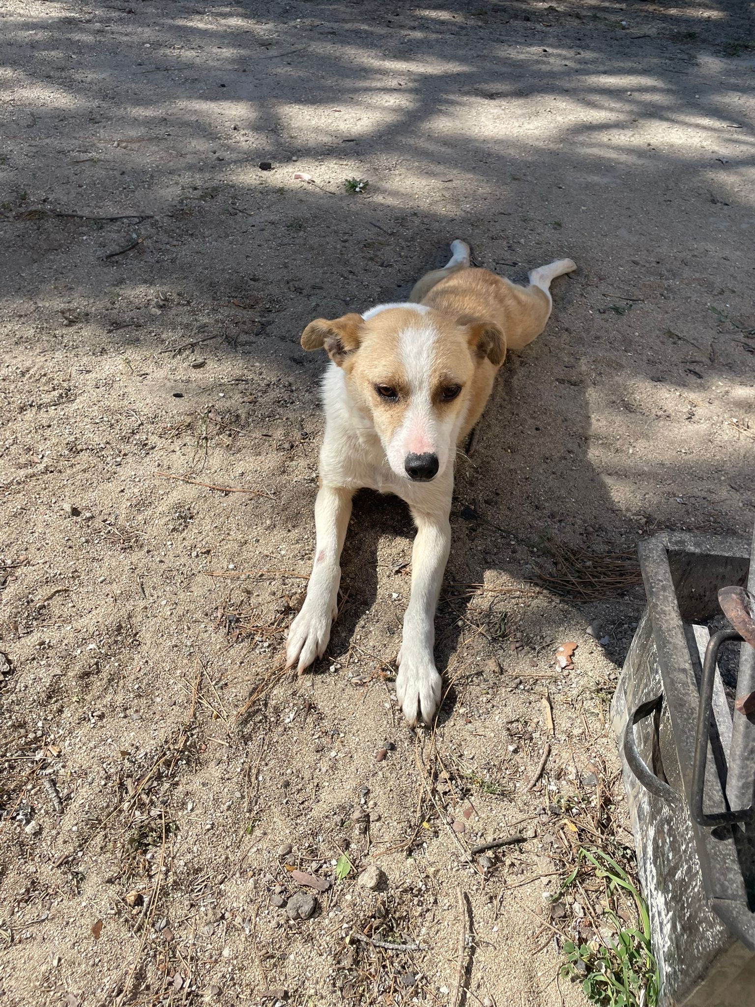 Apollo kam in unsere Protectora, nachdem er tagelang allein umherirrte, sich den Leuten näherte und um Essen bettelte... seine Ankunft in der Protectora war sehr stressig für ihn, nachdem wir ihn sichern konnten.