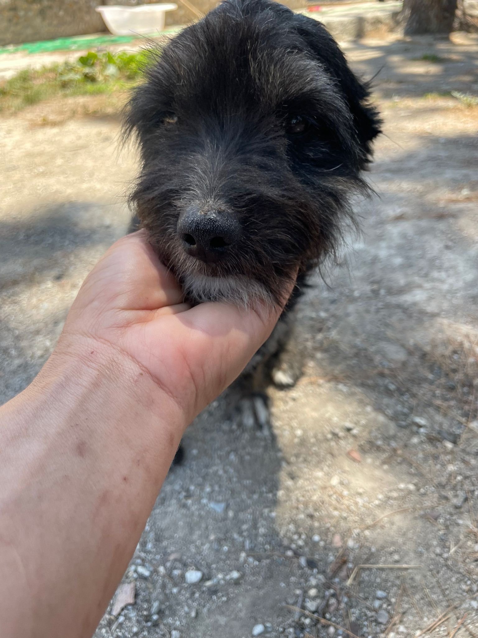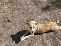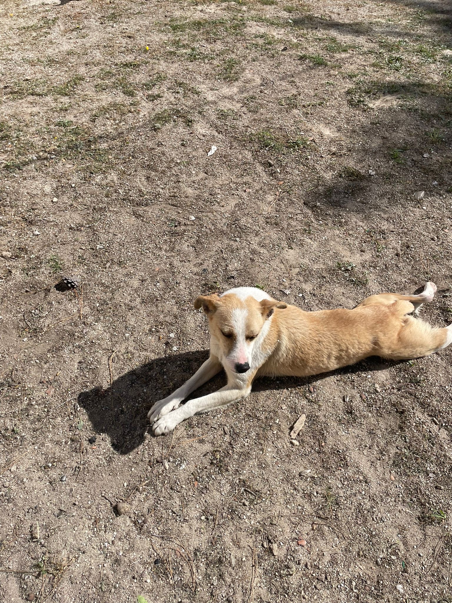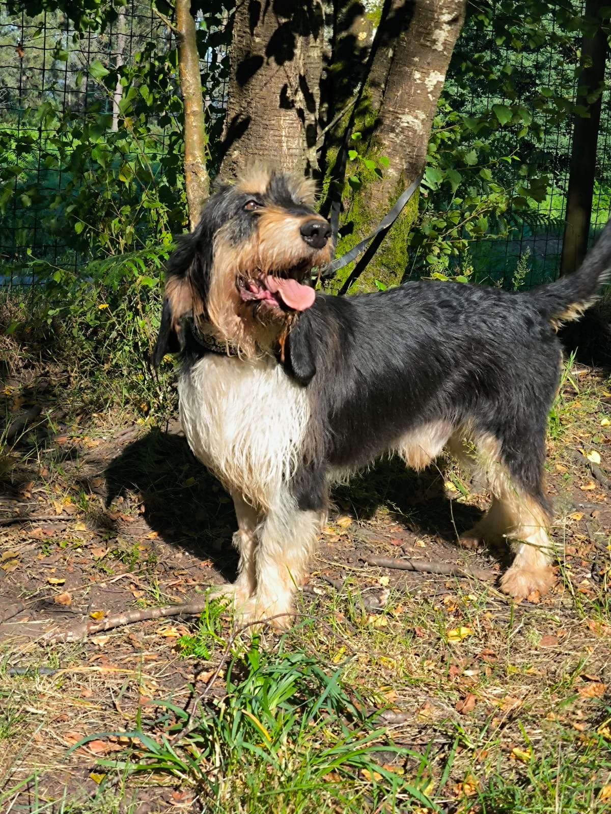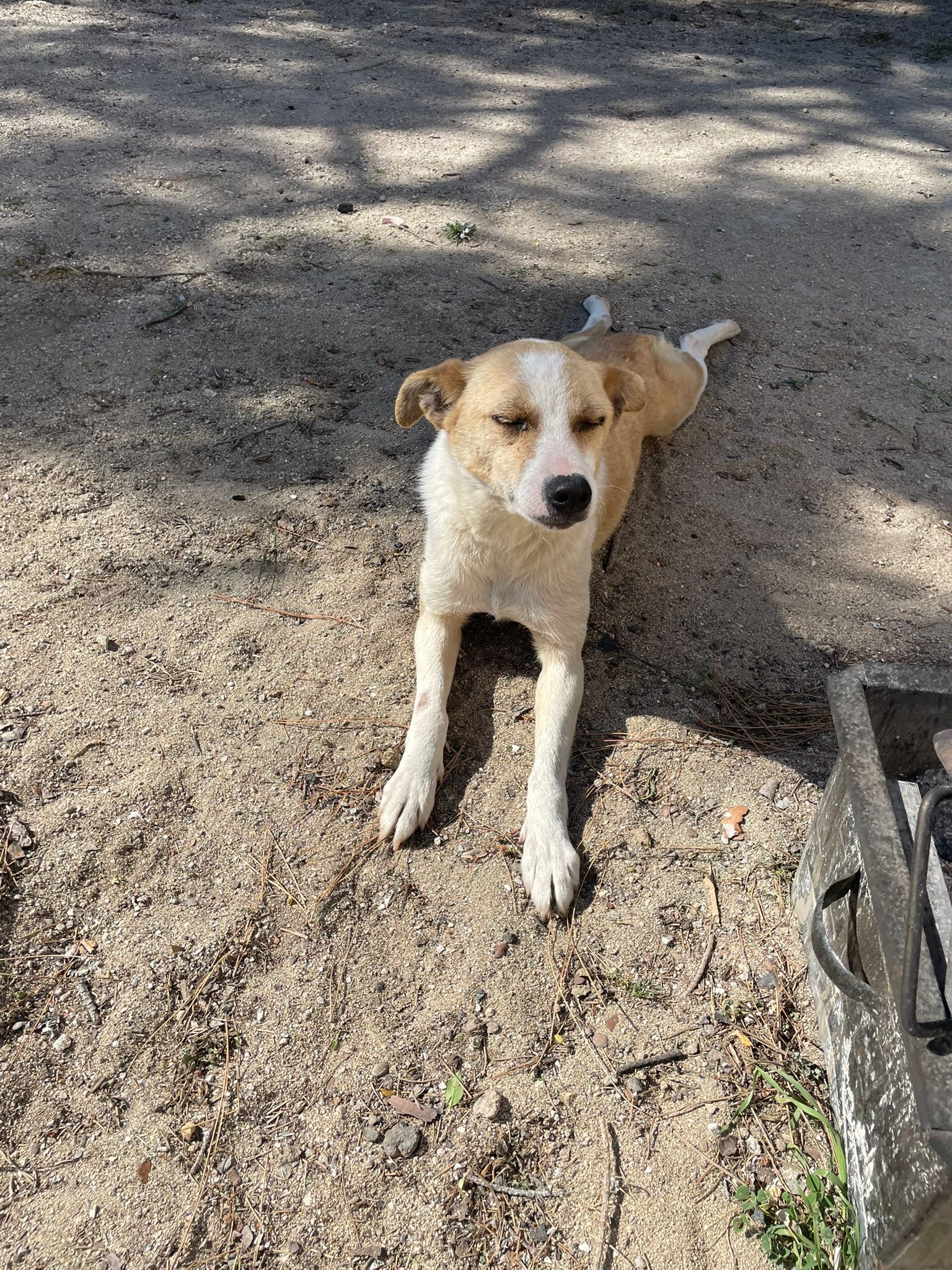 Apollo kam in unsere Protectora, nachdem er tagelang allein umherirrte, sich den Leuten näherte und um Essen bettelte... seine Ankunft in der Protectora war sehr stressig für ihn, nachdem wir ihn sichern konnten.