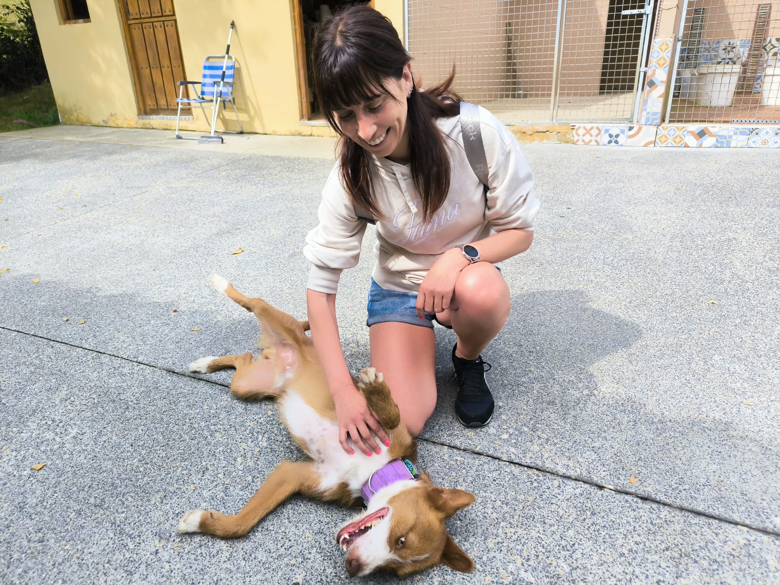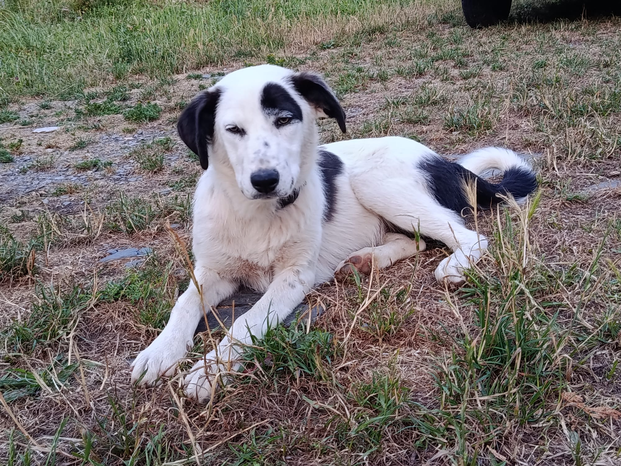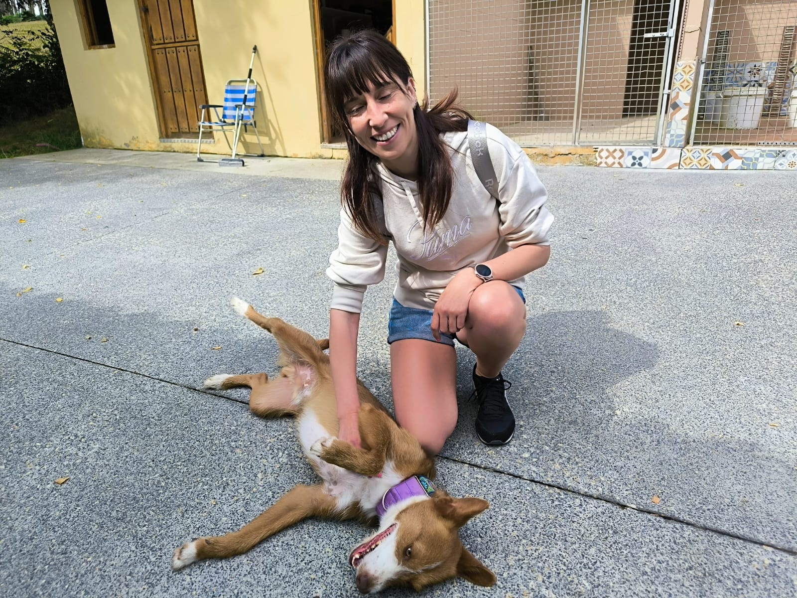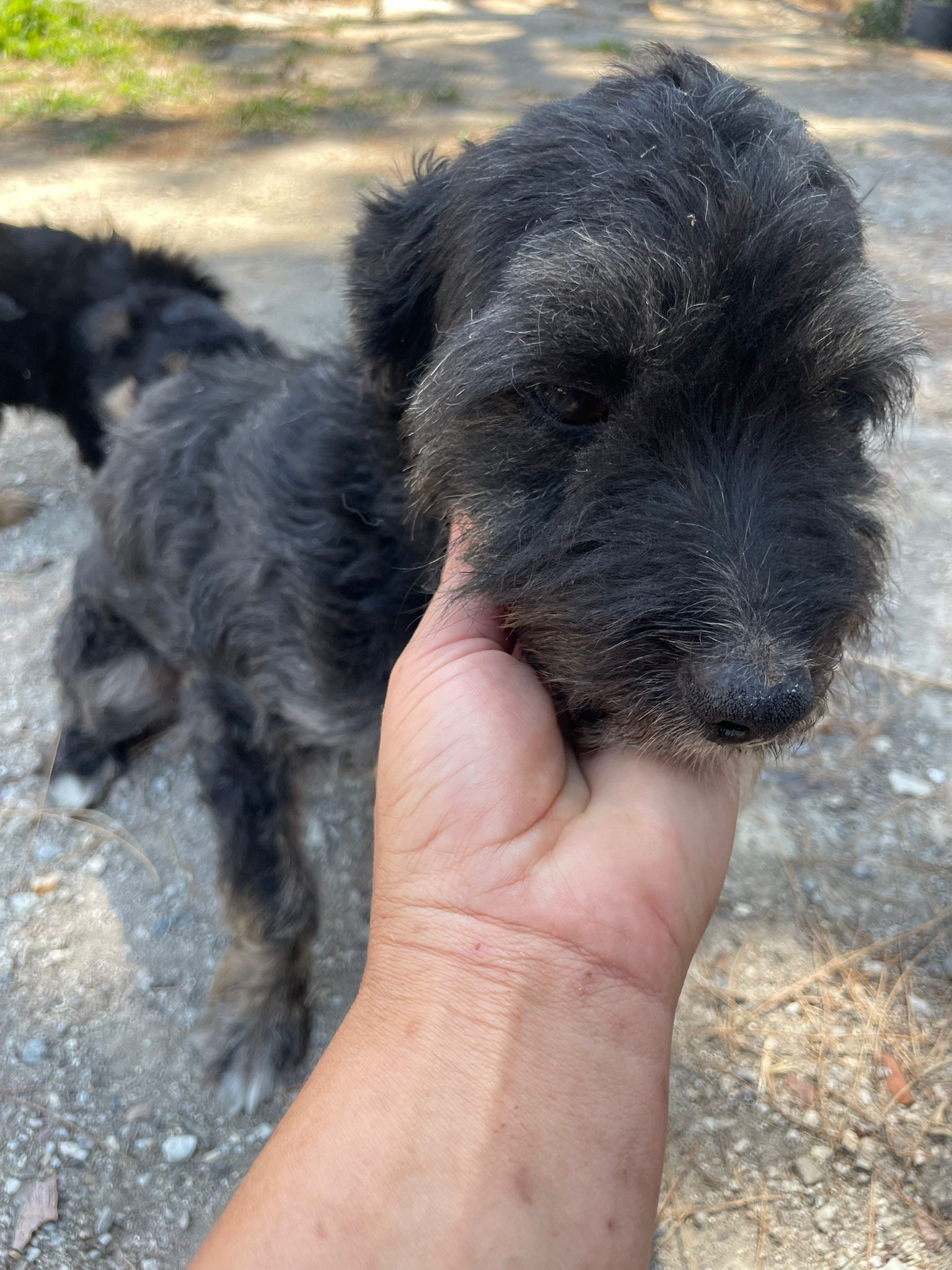 Apollo kam in unsere Protectora, nachdem er tagelang allein umherirrte, sich den Leuten näherte und um Essen bettelte... seine Ankunft in der Protectora war sehr stressig für ihn, nachdem wir ihn sichern konnten.