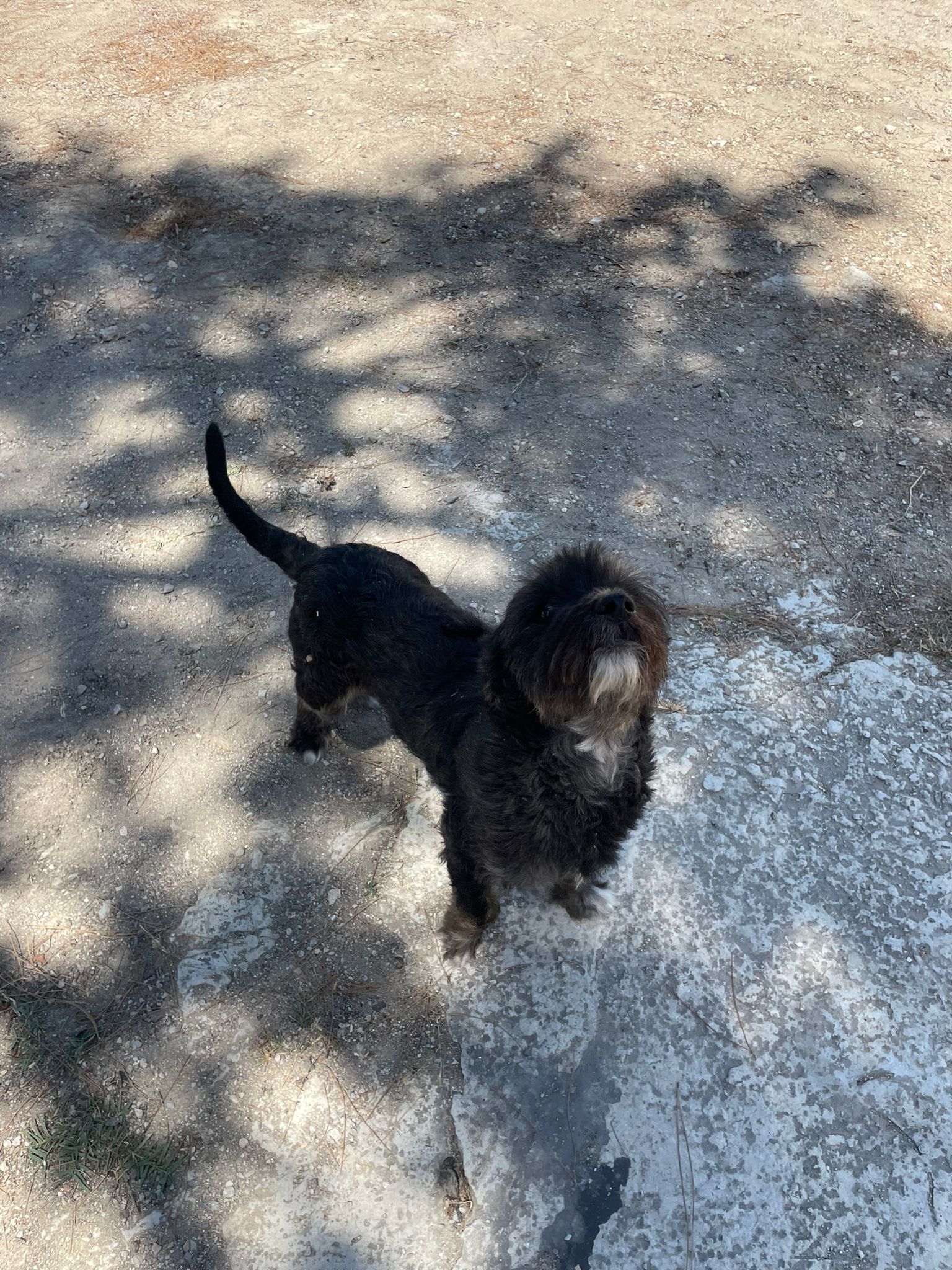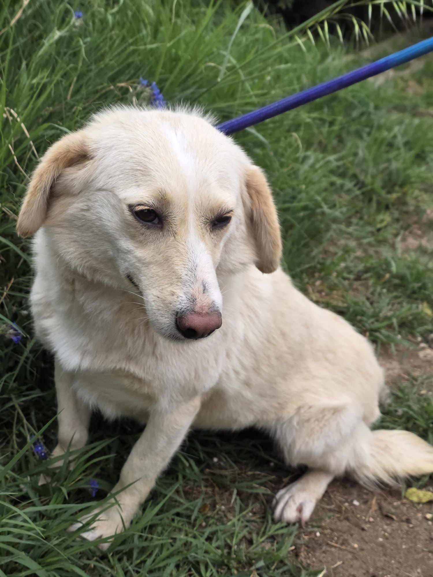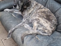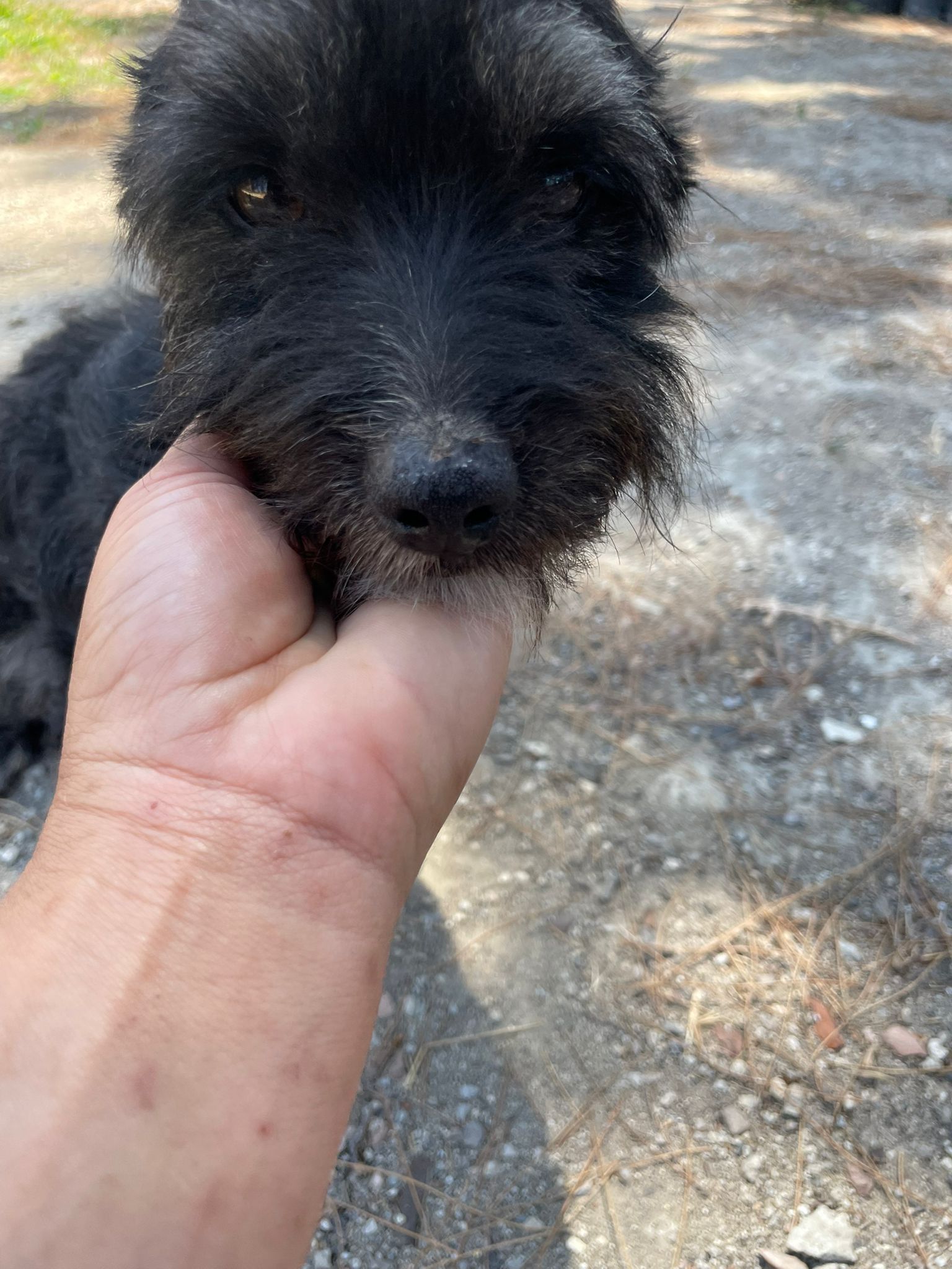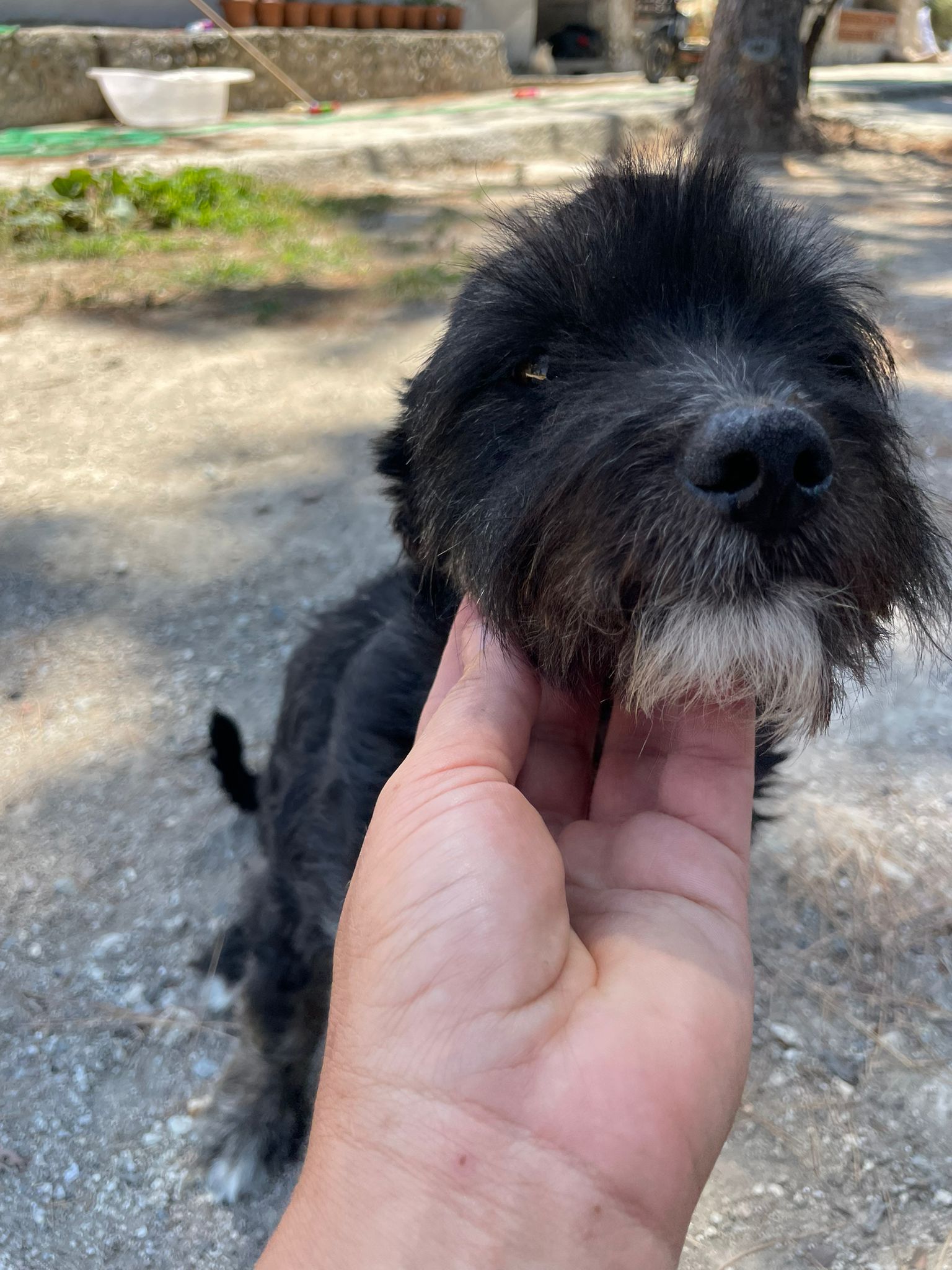 Apollo kam in unsere Protectora, nachdem er tagelang allein umherirrte, sich den Leuten näherte und um Essen bettelte... seine Ankunft in der Protectora war sehr stressig für ihn, nachdem wir ihn sichern konnten.