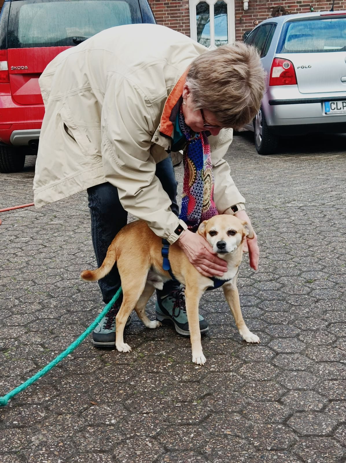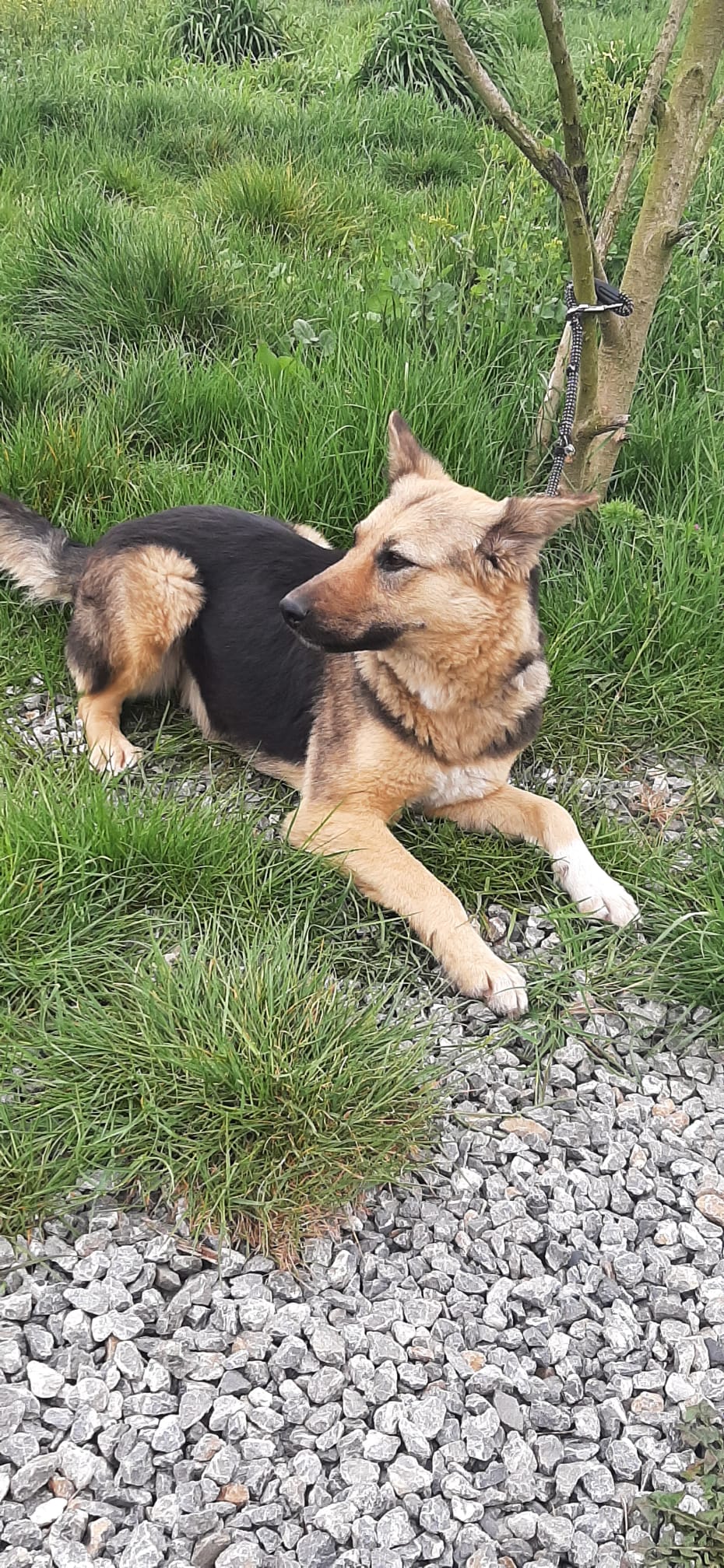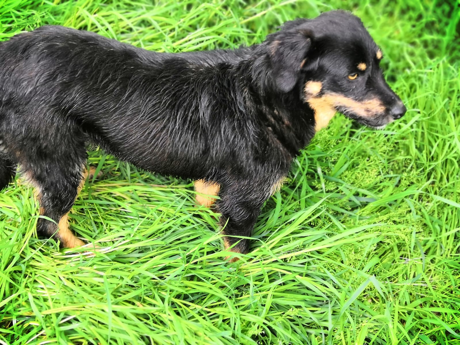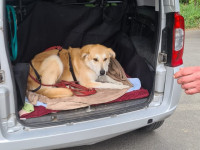 Jetzt ist der Bub seit 2 Wochen da und hat sich relativ gut eingelebt. Er wird von Tag zu Tag sicherer. Eigentlich wollte ich nach der Eingewöhnung recht zügig anfangen mit ihm zu trainieren um ihn auf den Wesenstest vorzubereiten. Ich hatte einen stattlichen jungen Burschen von ca 40 Kilo erwartet. Übernommen habe ich: ein Klappergestell ! Mir war direkt klar, dass er wohl nicht ganz fit ist.