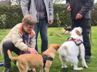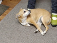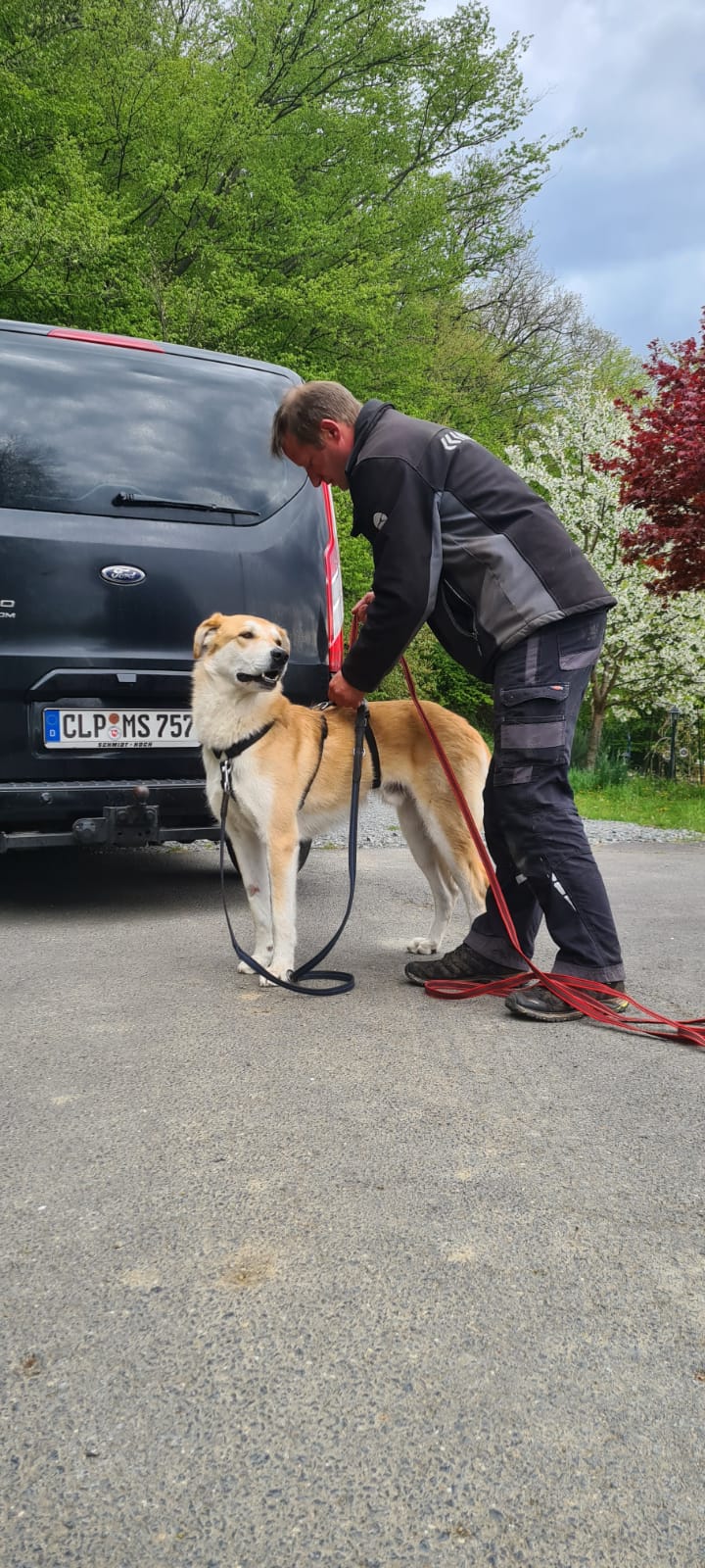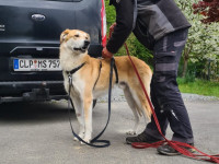 Nachdem wir den Bandwürmern den Kampf angesagt haben,sollte es aufwärts gehen. Leider leidet er immer noch an extremer Appetitlosigkeit ,der wir jetzt auf den Grund gehen müssen. Blutbild zeigt wohl eine chronische Entzündung. Die Kosten schnellen jetzt rasant in die Höhe. Es stehen jetzt noch einige Untersuchungen an.Sowohl der Verein ( Hunderettung-aktiv) als auch ich, versuchen jetzt mit vereinten Kräften die Tierarztkosten zu stemmen. Aber einen kranken Hund zu trainieren macht wenig Sinn! Wir hoffen jetzt so schnell wie möglich die Ursache seines Problems zu finden. Momentan wiegt er bei 63 cm Schulterhöhe nur noch 35 Kilo. Eventuell hat ja auch sein Zustand zu seiner Verhaltensproblematik beigetragen. Er ist EXTREM schreckhaft und ängstlich in manchen Situationen. Dann neigt er in der Unsicherheit zum Übersprung wie bellen oder auch zur Flucht. Ich bin überzeugt davon ,dass er sich einfach nicht gut fühlt und deshalb so reagiert. Also heißt: erstmal gesund werden, bisschen was auf die Rippen bekommen und dann können wir endlich mit dem Training beginnen.