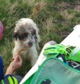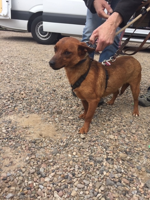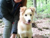 Sie wurde mit einem weiteren Hund zusammen ausgesetzt auf einem Feld gefunden. Beide Hunde waren völlig verängstigt und verstört.