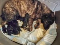 Es hat stark geregnet und die Welpen waren mehr tot als lebendig. Einer ist leider gestorben vor Nässe und Schwäche.