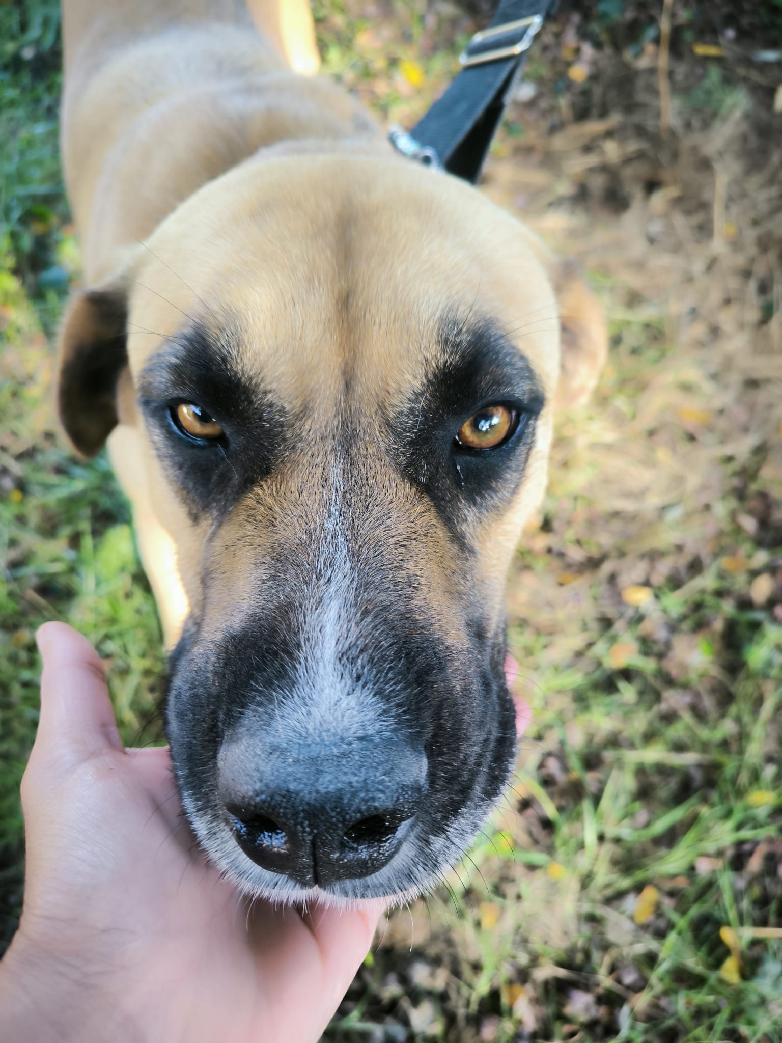 Michel, ein spanischer Mastin-Mischling, wurde mit einem Gewicht von nur 24 kg von der Straße gerettet. Er war sehr erschöpft , ausgehungert, hatte großen Durst und sein Kopf und sein Körper zeigten, dass er misshandelt wurde. Mittlerweile hat Michel sich in der Protectora bei Sonia und Carmen gut erholt und zeigt seinen wunderbaren und freundlichen Charakter. Er ist im Umgang sehr liebevoll mit Menschen und mit anderen Hunden und ist ruhig und ausgeglichen, typisch für einen spanischen Mastin. Michel wurde am 01.11.2021 geboren (Schätzdatum der Tierklinik in Spanien) und ist ca. 70 cm groß. Natürlich muss er weiter an Gewicht zunehmen und Muskeln aufbauen. Er liebt es, mit anderen Hunden zu spielen und ist lt. Aussage unserer Tierschützerin in Spanien ein wunderbarer Hund. Wir hoffen, dass wir für Michel zeithnah ein passendes und liebevolles Zuhause finden werden.