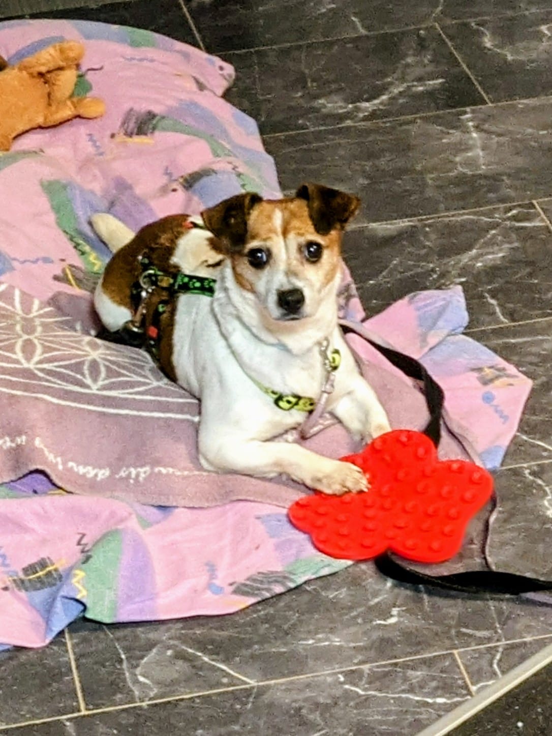 Neues von der kleinen Manchi, die jetzt "Pixie" heißt. Die kleine Schnute legt ein ordentliches Tempo vor! Treppensteigen, die erste kleine Gassirunde, ein bisschen rumblödeln.... Jeden Tag gibt's einen kleinen Fortschritt!. Mittlerweile guckt sie, wo ich bin. Gestern ist sie mir von sich aus ins Büro gefolgt und hat sich ganz selbstverständlich unter den Schreibtisch gelegt. Und morgens sind wir besonders gut gelaunt. Da gibt's die ersten Ansätze von Spiel. Das geht ziemlich rasant. Damit hätte ich nicht gerechnet. Eine riesige Baustelle müssen wir aber noch bearbeiten. Sie ist noch extrem handscheu. Also streicheln oder anfassen geht noch nicht. Hände findet sie total gruselig. Aber das biegen wir auch noch hin..... Sie ist total cool mit den anderen Hunden und wenn mein fast blinder, tüddeliger Merlin über sie drüber stolpert, dann macht sie nicht einen Mucks! Da hatte ich ein paar Bedenken. Aber sie macht alles so unfassbar toll! Eine richtige kleine Herzensbrecherin.