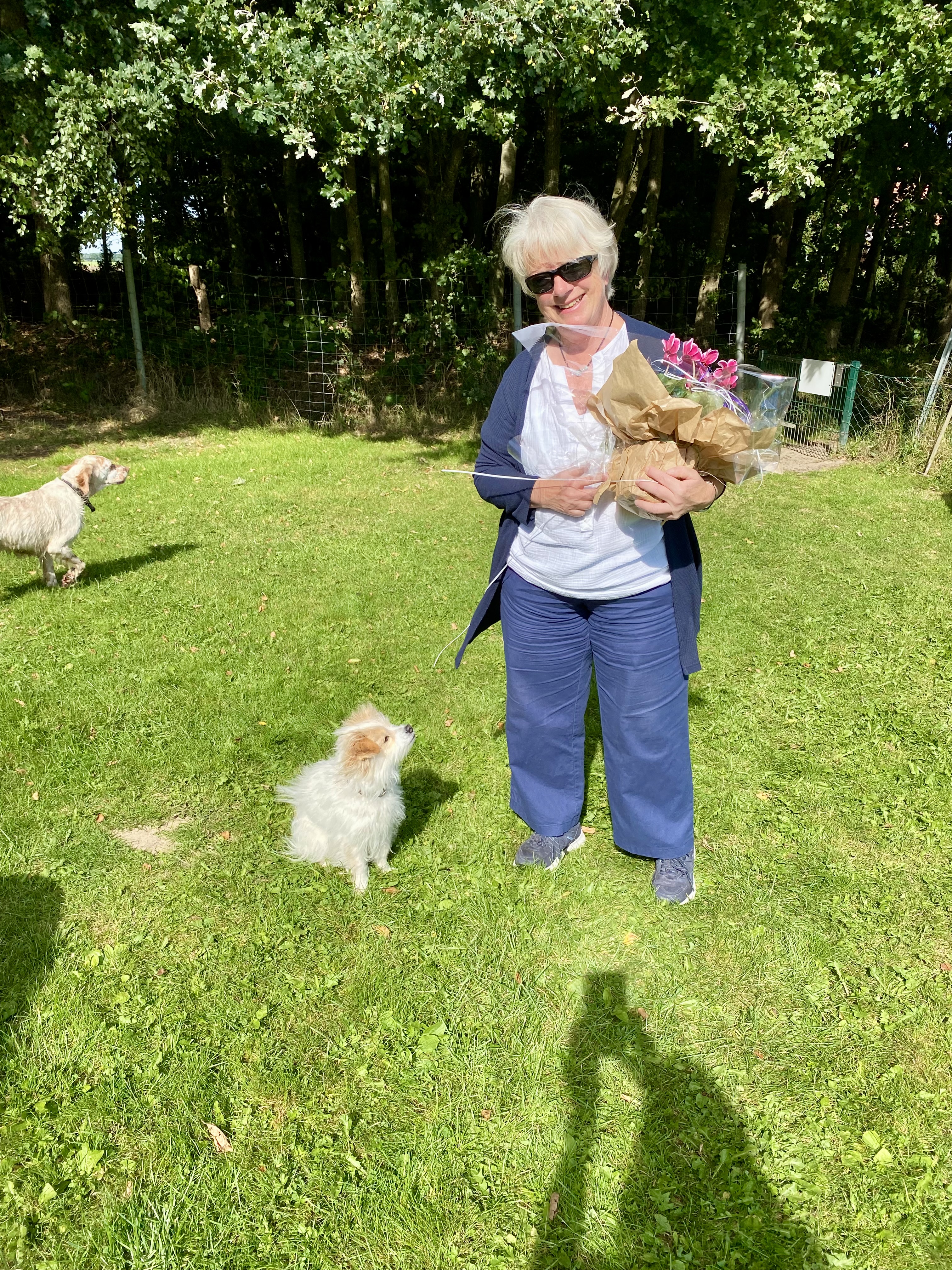 Als Dankeschön für diese tolle Spende und dafür, dass wir unser internes Teamtreffen mit unserem Grill-Baum auf dem wunderschönen Gelände der Hundeschule "Hundeschulhof Friesland" veranstalten durften (einschl. unserer ca. 20 Hunde!), haben wir Gisela zwei Pflanzschalen überreicht, von denen sie hoffentlich lange Zeit etwas hat!