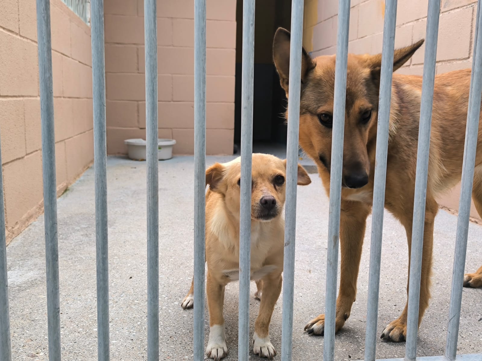 Hier seht ihr unseren liebenswerten Hundesenioren Zar mit dem kleinen, bezaubernden Goku in der Protectora. Die beiden mögen sich sehr und Zar liebt Goku!