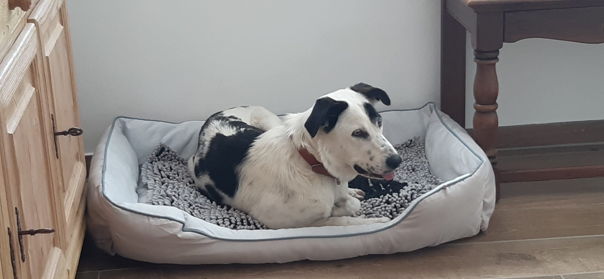 Endlich ist der liebe Hundesenior Apollo ein happy dog und hat sein liebev olels Zuhause für immer gefunden. Seine wunderbare Familie hat Apollo von Frankreich aus England abgeholt. So schön und enorm von Apollos Familie. Wir sind sehr glücklich darüber und freuen uns sehr. Apollo darf nun endlich sein Leben genießen, im Haus schlafen und hat schon eine der Katzen, die zur Familie gehören, als kleine Freundin! Wir wünschen Apollo und seiner Familie alles Liebe und Gute und bedanken uns herzlich für diese wunderbare Adoption.