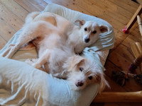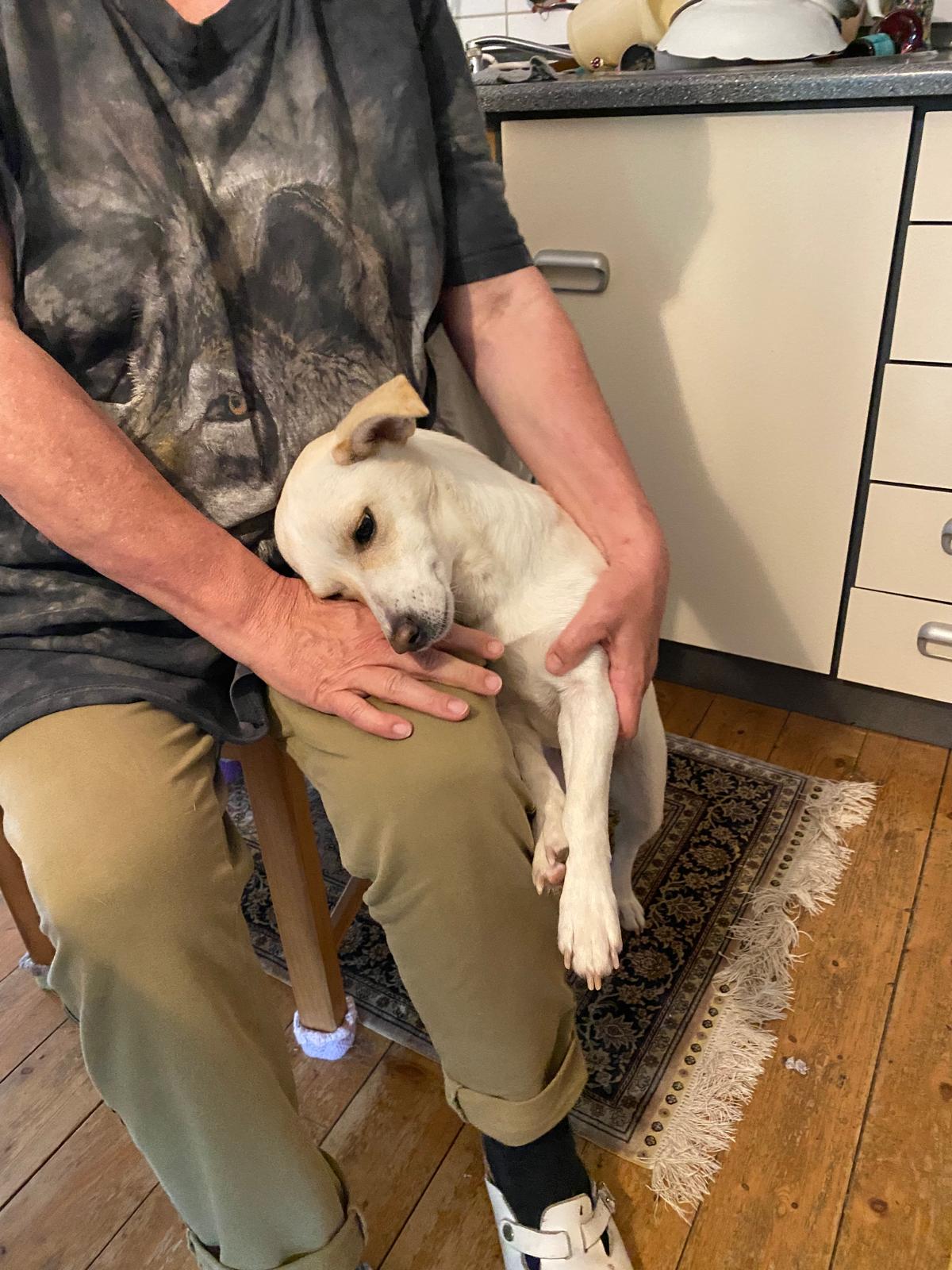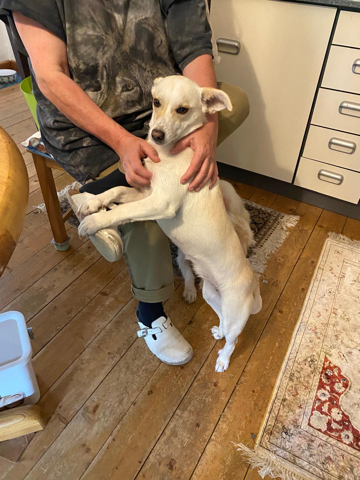 Apollo wurde über eine Vereinigung an eine Familie geschickt, wo er innerhalb von 48 Stunden auf die Straße gesetzt wurde. Bisher blieb Apollo in einer Pflegestelle (mit allen Kosten bezahlt), bis er gesundheitlich wieder reisen konnte, da er schon ein älterer Hund ist ... in diesem Verlauf haben wir versucht, eine Familie für dich zu finden, damit du bis zu deinem Tod nie wieder deiner Freiheit beraubt werden musst, aber es war ein Fehlschlag. Apollo hat endlich seine Tierarztbescheinigung bekommen, um wieder ins Tierheim nach Spanien zu kommen. Er hat schon sein Ticket für Mittwoch reserviert, dann beginnt seine Tour von Tausenden von Kilometern, um ihn eventuell lebenslang wieder einzusperren... aber ich verspreche dir Apollo, dass es dir hier nie an täglich Küssen fehlen wird und all die Liebe, die wir dir geben können, dein ganzes Leben, in dem du bei uns bist...